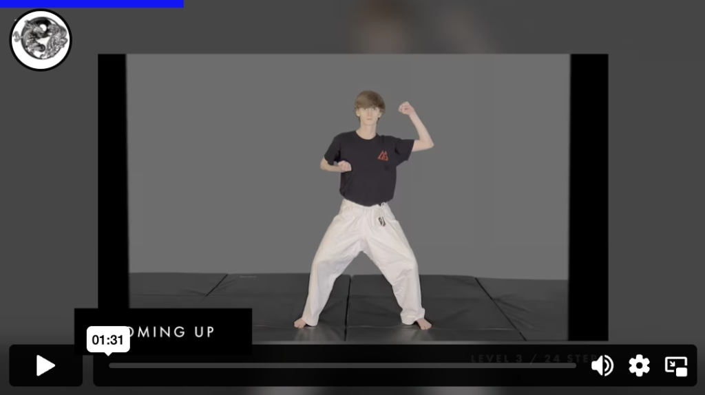 Practicing this upward block enhances coordination, strength, and spatial awareness by guiding the arm in a smooth, controlled motion from across the body to an overhead position. This movement pattern helps develop cross-body coordination, improving bilateral integration and reinforcing brain-body connection. The upward lift strengthens shoulder stability and increases range of motion, supporting body awareness, arm control, and confidence in movements that involve overhead reach and protection.